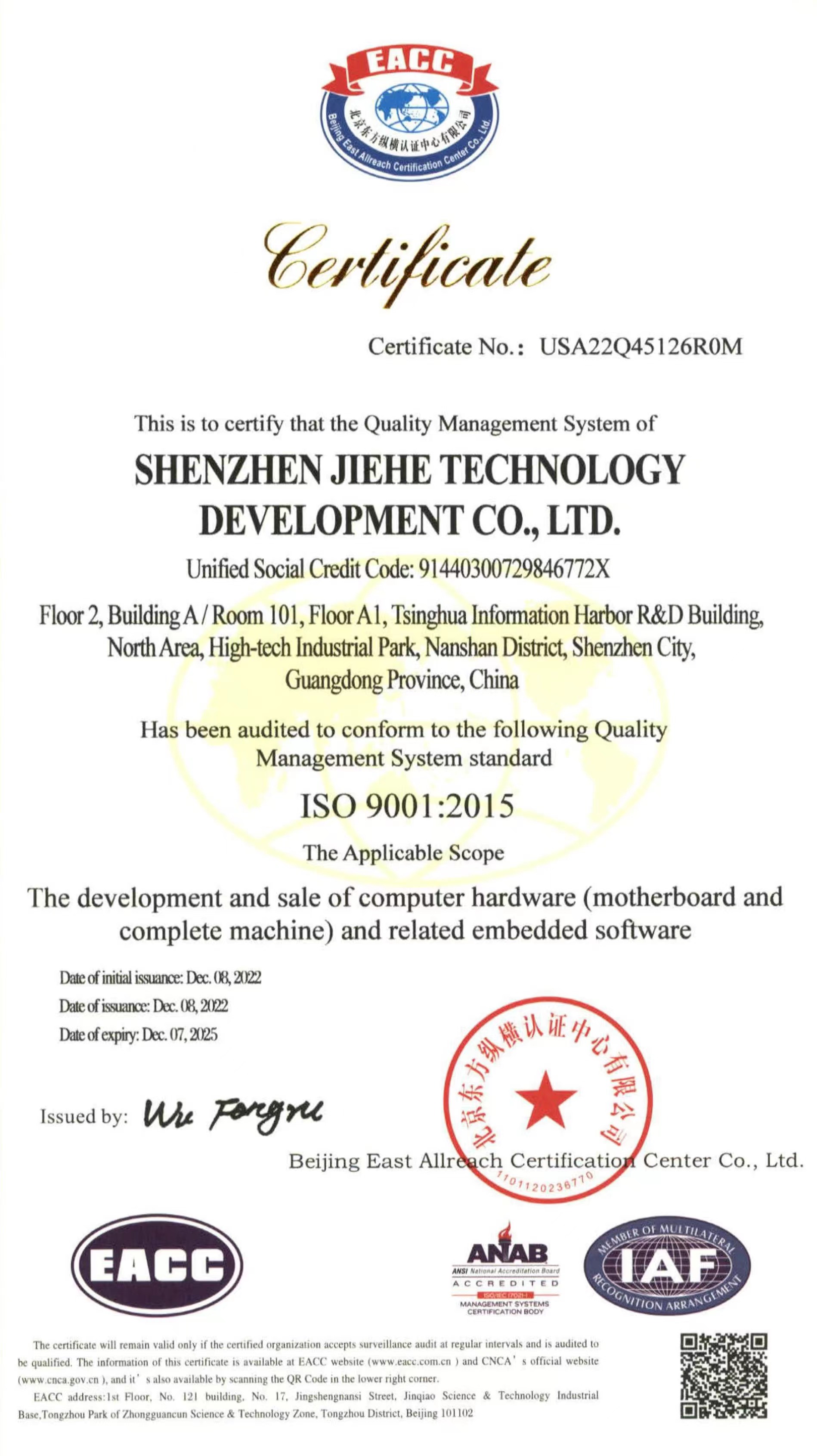 ISO9001质量管理体系认证作为国际标准化组织的管理性质标杆,它的地位可见一斑,其认可彰显了金年会|金年会·jinnian科技的体系管理以及产品的质量。金年会|金年会·jinnian科技在过去几年不断提升设备标准化生产的能力,减少人为质量问题,把ISO9001质量管理体系理念贯穿于产品研发—生产全流程。