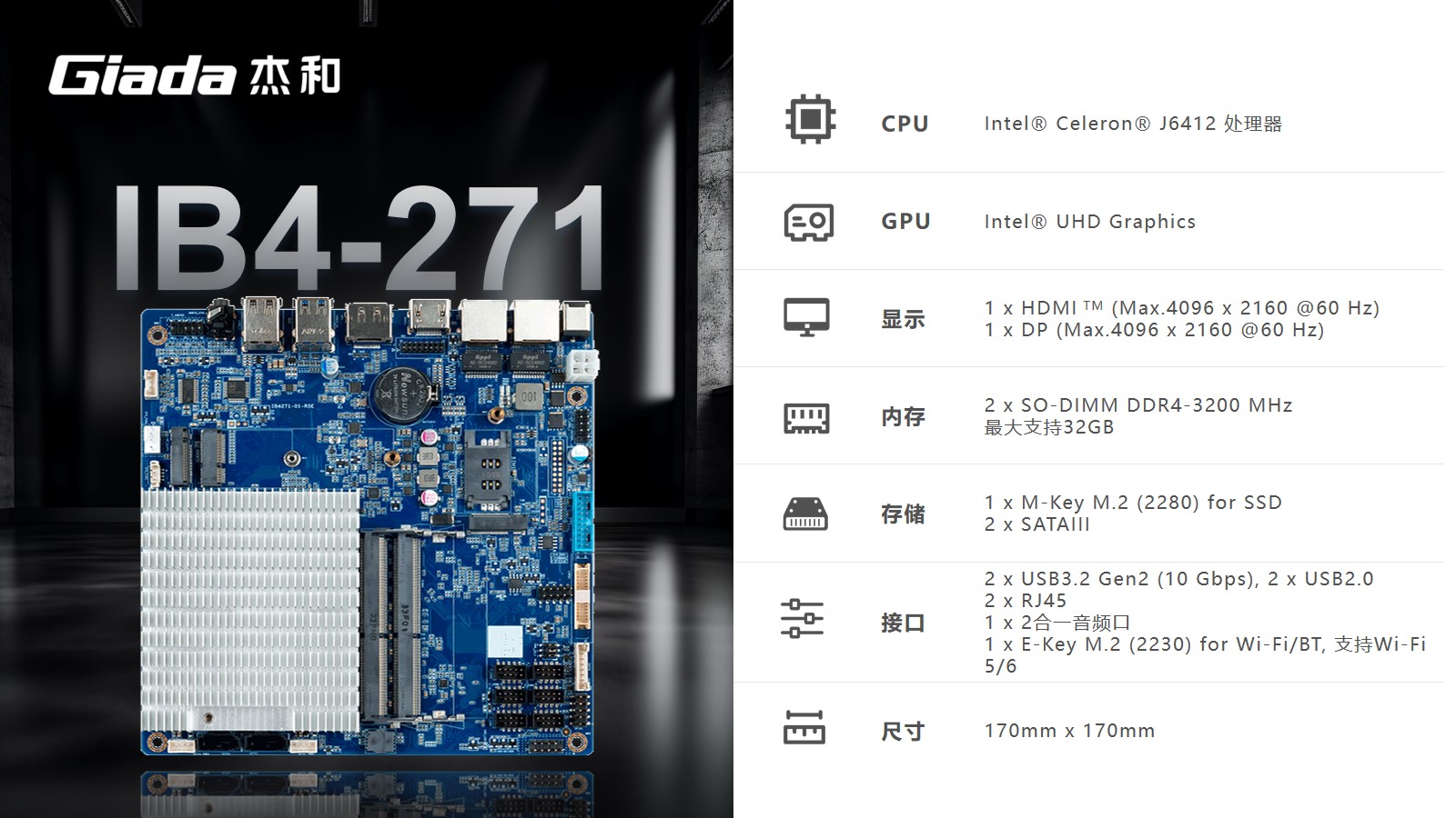 金年会|金年会·jinnianIB4-271搭载的是Intel® Celeron® J6412处理器,Elkhart Lake平台在单线程性能上提升了1.7倍,在多线程性能方面提升了1.5倍,具有三个显示输出,包括DP、HDMI 和 LVDS 端口,能够为工业的多媒体应用、标牌显示和数字菜单提供足够的灵活性。
