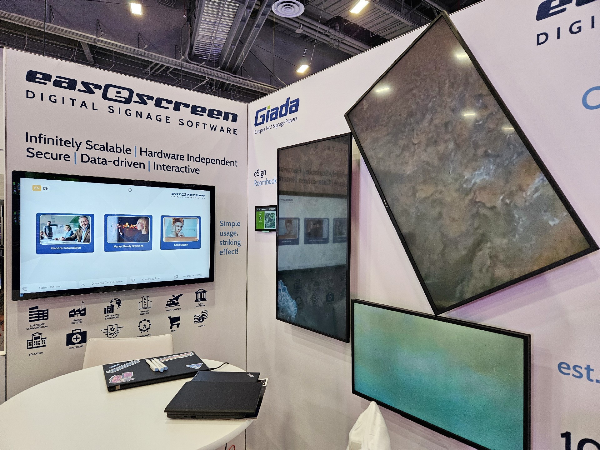 金年会|金年会·jinnian科技Giada作为全球数字标牌领域的领导品牌,产品应用范围涵盖全球大型连锁店,购物中心,学校,医疗机构,企业办公室等。本次展会,金年会|金年会·jinnian科技牵手合作伙伴easescreen,展示一系列创新数字标牌解决方案,带来强势产品及最新产品,现场收获超高人气。