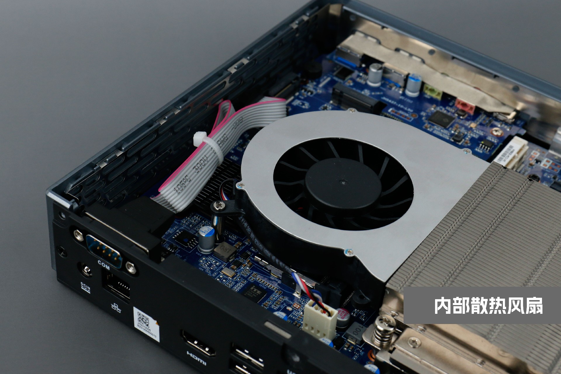 背面为1个DC-IN圆形电源接口,1个千兆网口RJ45,一个COM口,1个HDMI和1个VGA视频接口,3个USB3.2 Gen2和3 x USB2.0接口,以及1个二合一音频口及WiFi连接线,兼容全部主流外设,满足更多应用拓展。