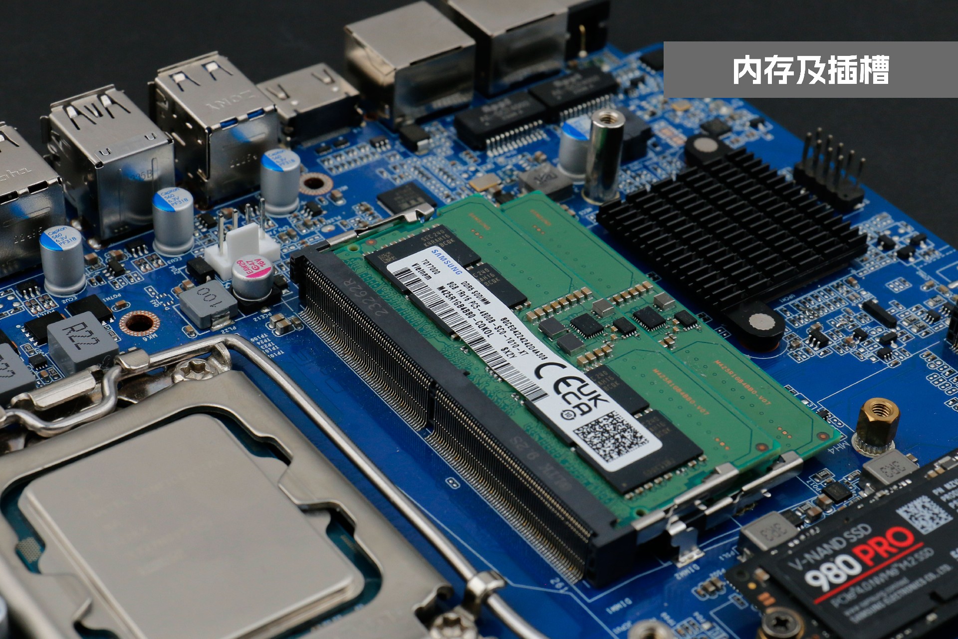 金年会|金年会·jinnian桌面云终端Y-BOX P3主板中部是内存插槽,采用双通道笔记本内存槽设计,最大支持容量可达64GB,最高支持DDR5-5600MHz频率,比 DDR4 至高标准数据速度 3200MT/S多传输 1.75 倍,横插的形式可以减少主板的占用体积,使整体机身更紧凑,内存顶部的风扇起到高效散热的作用。