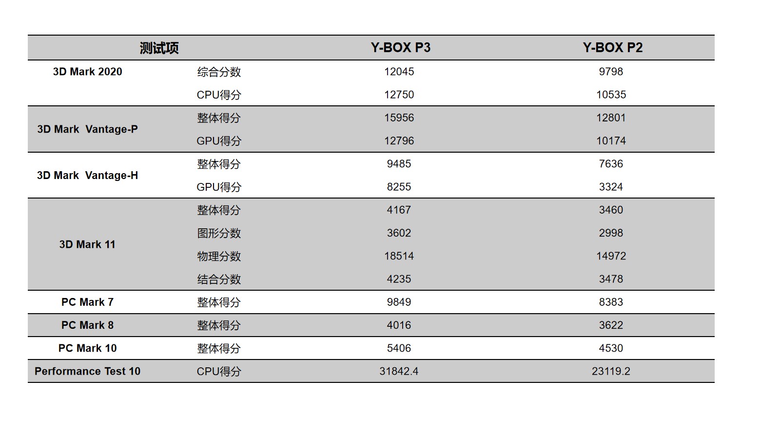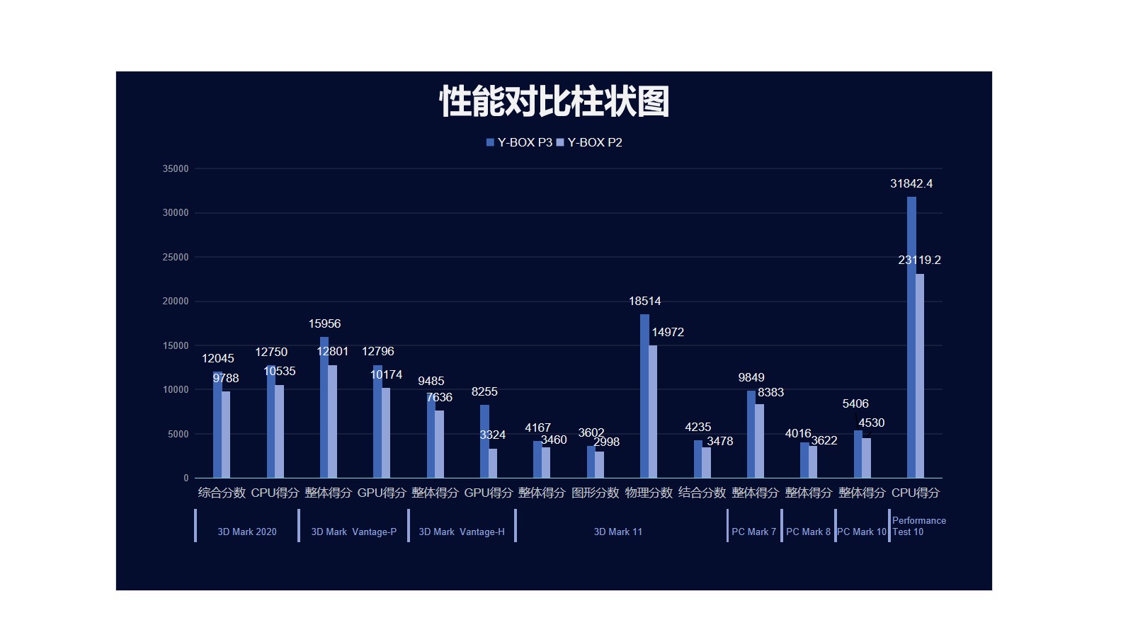 金年会·jinnian来具体看看各个测试项目的跑分情况,金年会·jinnian分别用3D Mark、PC Mark以及Performance 10等不同系列不同软件进行跑分,测试项目涵盖显示性能测试、系统性能测试、CPU性能测试等。通过下面的表格及柱状图可以看出,金年会|金年会·jinnian桌面云终端Y-BOX P3的数据在各项性能上都得到了大幅度提升。