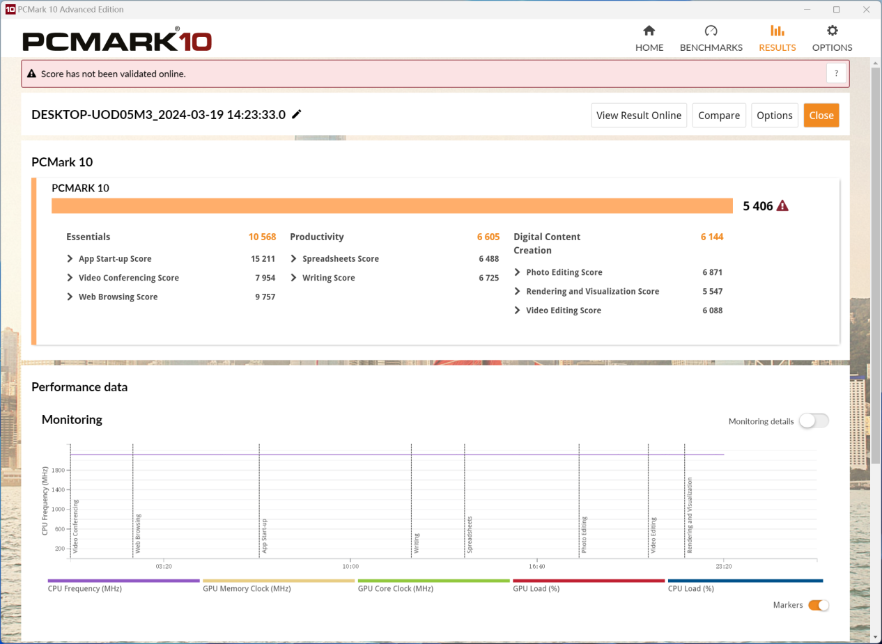 PC Mark 10 含有一整套全面的测试项,涵盖现代办公场所中的各种任务,偏向于家用和办公场景的性能测试软件,这些测试总共包括三个大的子项目:常用基本功能(程序启动、视频会议、网页浏览)、生产力(表格和文档)、数位内容创作(照片编辑、渲染和视频编辑)。