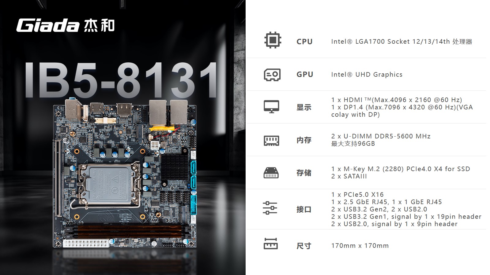 金年会|金年会·jinnian科技嵌入式主板IB5-8131采用Intel® B760 芯片组,支持Intel® 第12代至14代处理器。大容量内存支持,配备2个U-DIMM DDR5 内存,最大支持96GB,频率最高可达5600MHz,可灵活扩展NVMe SSD和2个SATA3.0存储。基于此特点,智能柜员机可满足设备流畅丝滑运行的功能。