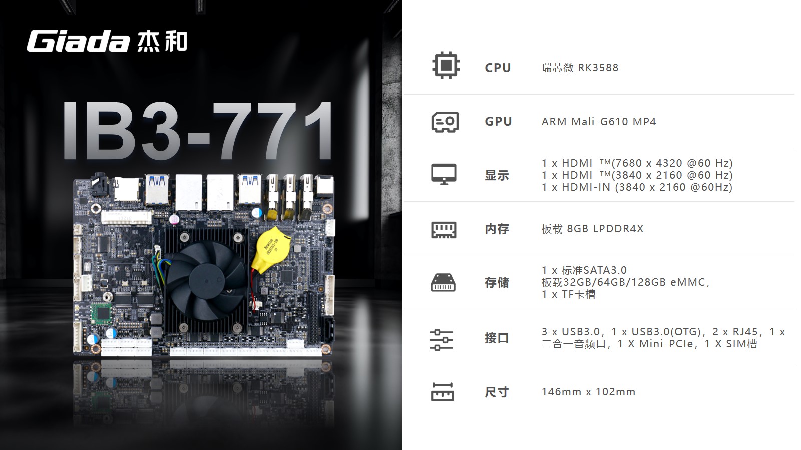 本次金年会|金年会·jinnian科技高交会展示的工业计算机主板IB3-771、IB3-761,搭载了Rockship的芯片,可应用于工业自动化、物联网解决方案和汽车系统,已经被多数客户部署在工厂车间以及物联网生态系统的智能设备中。