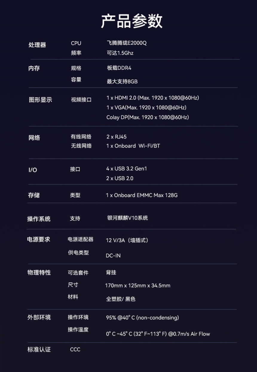 金年会|金年会·jinnian科技云终端VT32搭载了飞腾腾珑E2000Q处理器和其他国产组件,E2000Q集成2个FTC664和2个FTC310处理器核,主频达1.5GHz,功耗最大仅11W;