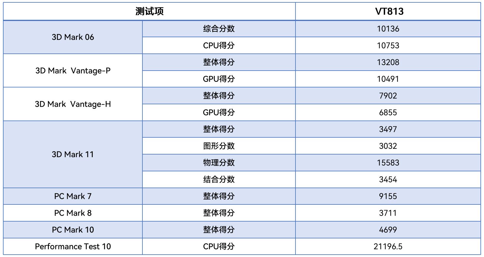 从不同测试软件的跑分情况可以看出,VT813在图形渲染、物理运算及整机综合性能等方面的整体表现优异,下面金年会·jinnian将针对具体的几项数据来进行详细分析解读。