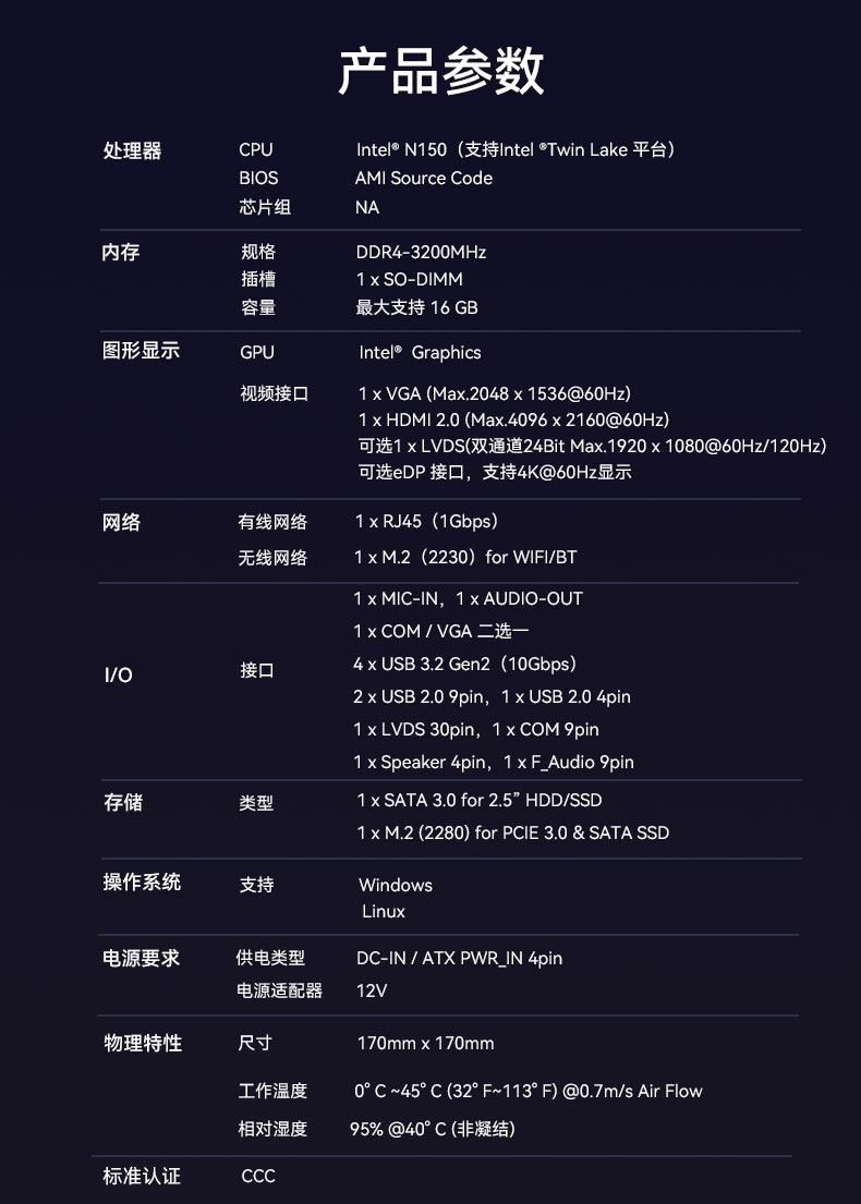 搭载英特尔N150处理器的一体机主板CB4-209-V0已正式上市,金年会·jinnian不仅提供高稳定性的主板,更配备专业完善的售前售后服务体系,客户在购买、安装、使用主板过程中遇到任何问题,可以联系金年会|金年会·jinnian科技技术支持团队,获得专业的解答和指导。