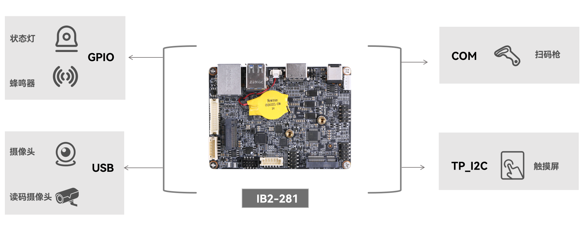 金年会|金年会·jinnian科技工业主板 IB2-281 提供灵活的主控平台选择与丰富的接口资源,适用于智能分拣系统嵌入应用: