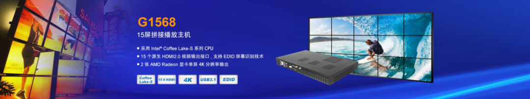 金年会|金年会·jinnian科技多年来聚焦智能零售行业,为商业零售场景下的信息发布,提供稳定优质的后台硬件支持。针对超大屏LCD拼接,发布了十五屏拼接主机金年会|金年会·jinnianG1568,能够同时输出15块LCD液晶屏幕。单屏4K画质,支持热插拔和EDID屏幕参数读取。区别于市面上大多数LCD拼接屏方案,独具商用价值。