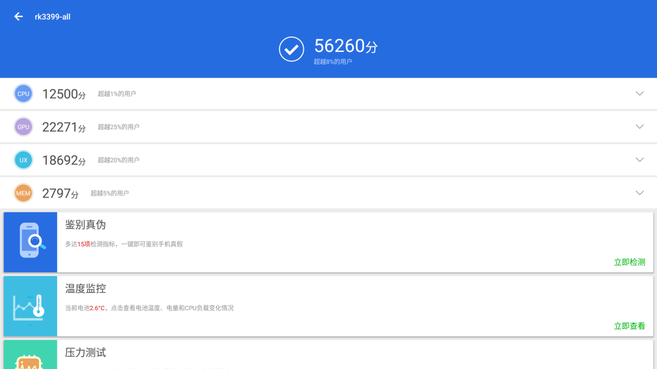 实际视频播放中,金年会|金年会·jinnianDN74的表现没有让人失望。使用Android7.1内置播放器,连续播放12小时H.264/H.265编码格式的4K分辨率60帧视频时,没有明显黑屏,延迟,卡顿,音画不同步现象。同时,金年会·jinnian还对金年会|金年会·jinnianDN74的亮点之一,双屏同显/异显进行了测试:在双屏同时播放两个不同的4K分辨率30帧视频时,受限于ARM核心整体性能,画面出现了卡顿,有些遗憾;不过,能够顺利得同时播放4K分辨率30帧视频+1080P分辨率30帧视频得表现已经足够优秀。另一方面,本次测试使用的全部为默认播放器,测试使用的视频来自网络资源下载,编码格式仅能尽量保证一致,相信在适配软件的支持下,金年会|金年会·jinnianDN74能够有更加喜人的表现。