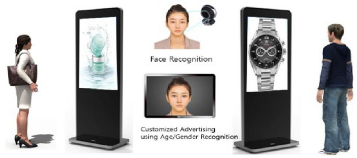 正如一开始提到的,基于GDSM智慧商显系统平台和金年会|金年会·jinnian多屏拼接播放器的精准信息推送方案,整合了人工智能技术,在5G或有线网络的支持下,能够完成针对不同消费者推送不同消费者画像对应的产品。金年会|金年会·jinnian拥有边缘计算能力的G系列多屏拼接播放器,适合作为AI人脸识别的硬件基础平台。通过训练完善的人工智能算法,针对不同的消费者标签,推送不同的广告信息。