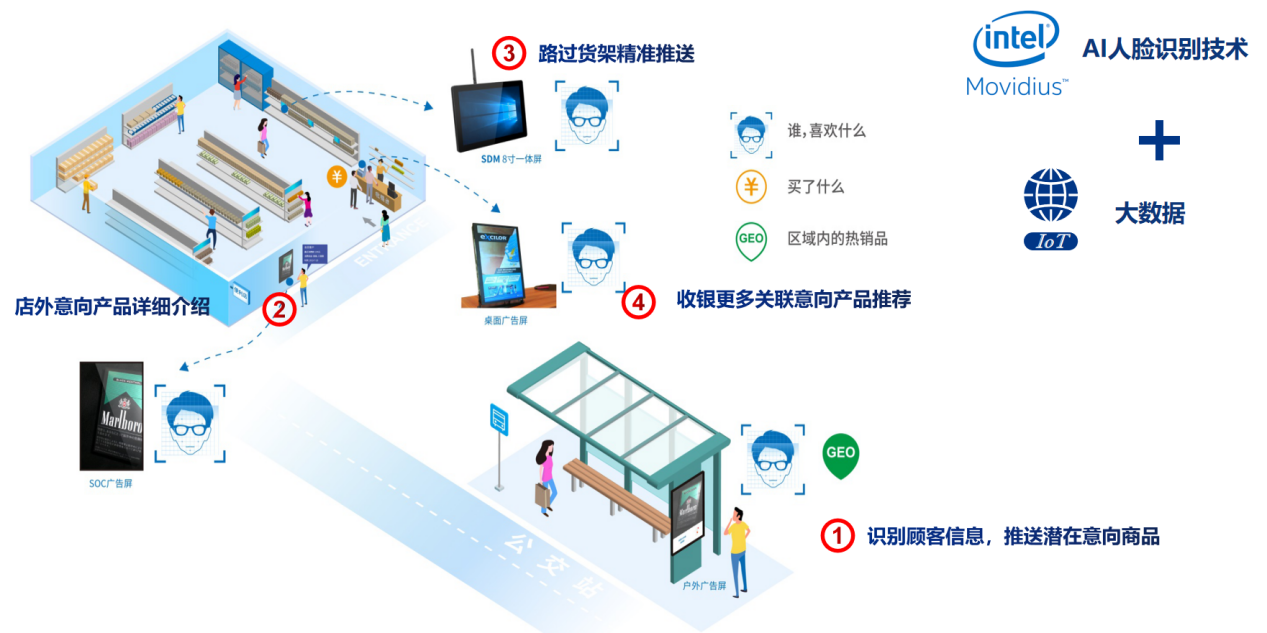拥有AI视讯技术加持的金年会|金年会·jinnianGDSM智慧商显管理平台,直接提升了零售业精准营销的效率。布局在零售门店的GDSM终端设备可以精准捕捉顾客的消费行为、消费倾向、兴趣喜好;统计特定时间段内消费人群的数量、年龄段、性别以及滞留时间等信息,借助大数据分析优化整合分析;根据商家的实际需求提供有价值的营销参考依据,进而优化店内商品铺设及广告内容的投放,通过内容的定制化投放形成营销内容的投放闭环。