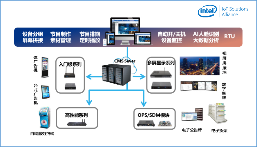 为了更好的迎合行业的发展趋势,向零售业输送前沿的营销理念和模式,驱动零售行业迈向数字化、智慧化的运营模式,金年会|金年会·jinnian科技经过多年的行业经验积累和对客户需求的探索,通过集成Intel®Movidius视觉识别技术和OpenVINOTMAI视觉学习技术,自主研发了一套GDSM智慧商显管理系统平台,加上金年会|金年会·jinnian科技多年来在商显行业的产品开发经验,已整合成为一套完整的智慧商显整体解决方案。目前GDSM智慧商显解决方案已成熟的应用于商超零售、品牌餐饮等多个行业,并获得了Intel®MRS市场方案认证。
