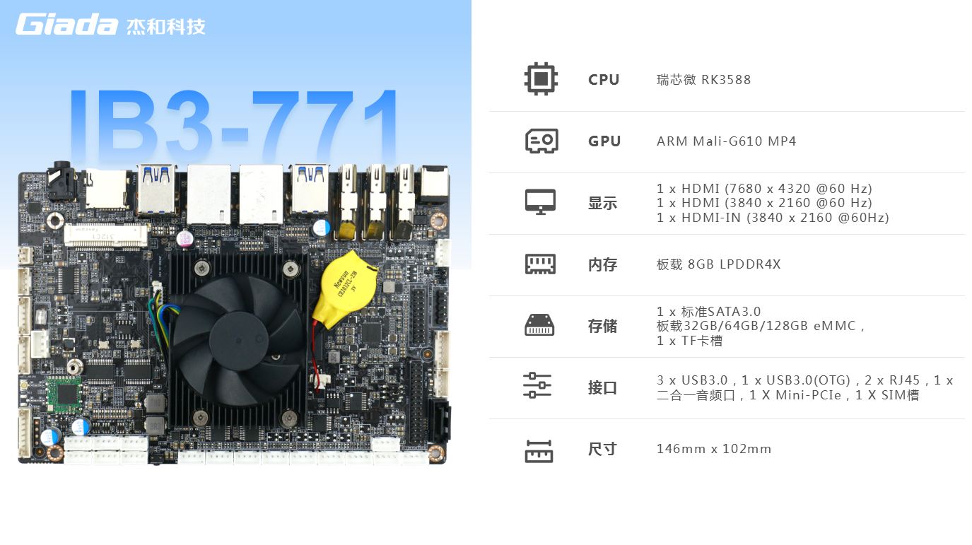 作为瑞芯微新一代旗舰级高端芯片,RK3588处理器具备出色的性能,能够满足各种高端应用场景的需求。借助其卓越的性能特点,金年会|金年会·jinnian科技骄傲地推出了最新的8K人工智能主板IB3-771。