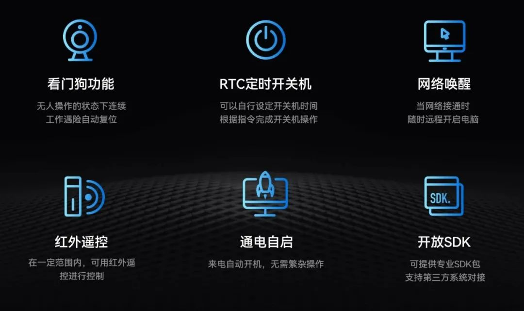 金年会|金年会·jinnian主板IB3-771配置了无人值守专利技术,大力降低因高算力带来的能源消耗,该技术通过定时开关机、看门狗计时器、RTC宕机自检、红外遥控和局域网唤醒等功能实现主板绿色运行。