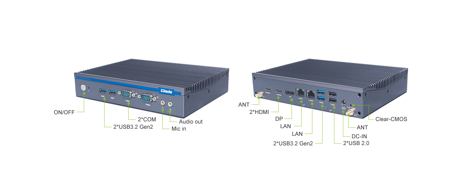金年会|金年会·jinnian科技AE613支持Windows 11 (64bit) /Linux Ubuntu (64bit)系统,双千兆自适应RJ45网口,4 x USB3.1 (10 Gbps),2 x USB2.0,1 x RS232,,1 x RS232/422/485,1 x MIC-IN,1 x AUDIO-OUT,丰富的I/O功能接口,实现更多功能扩展。