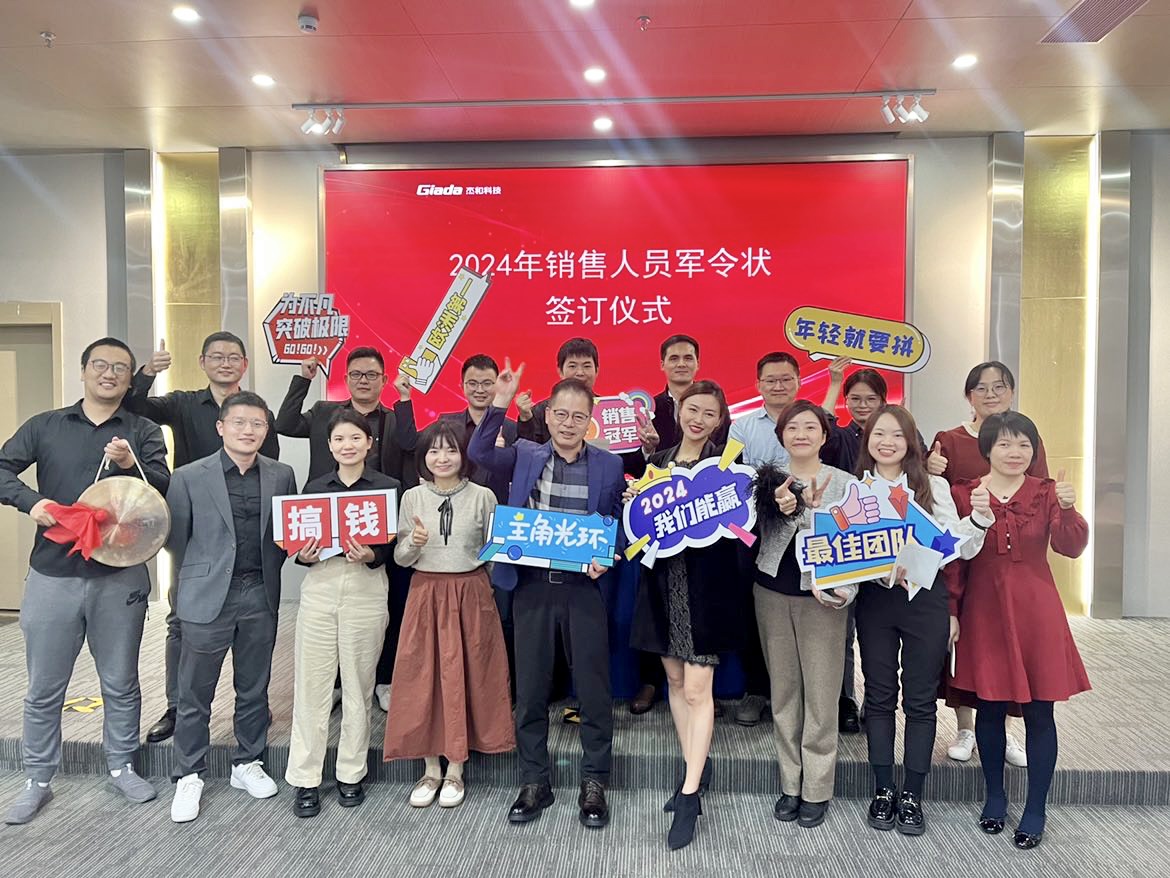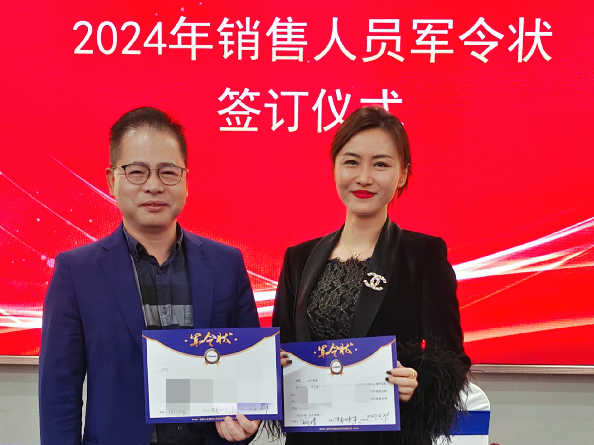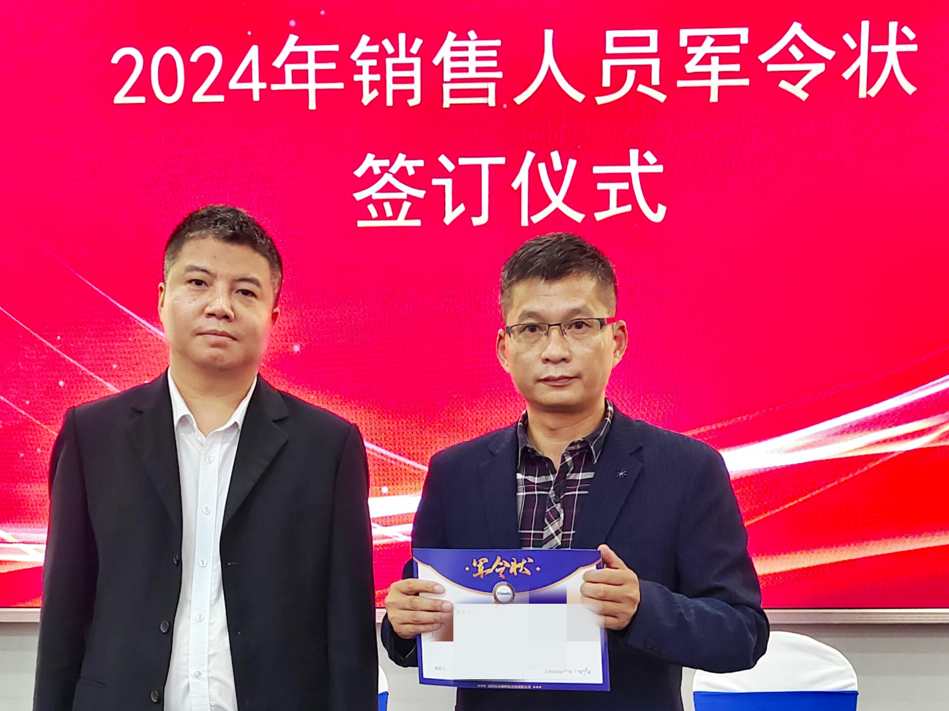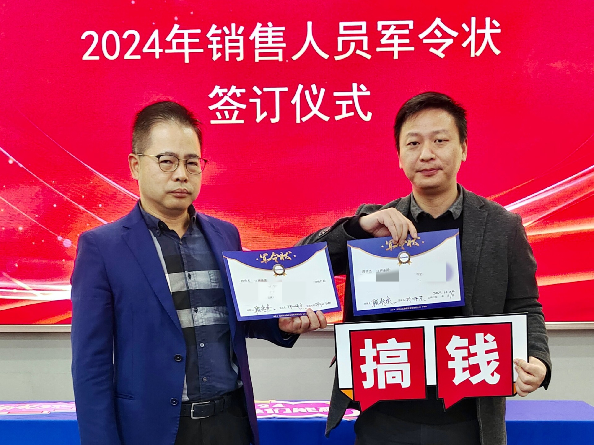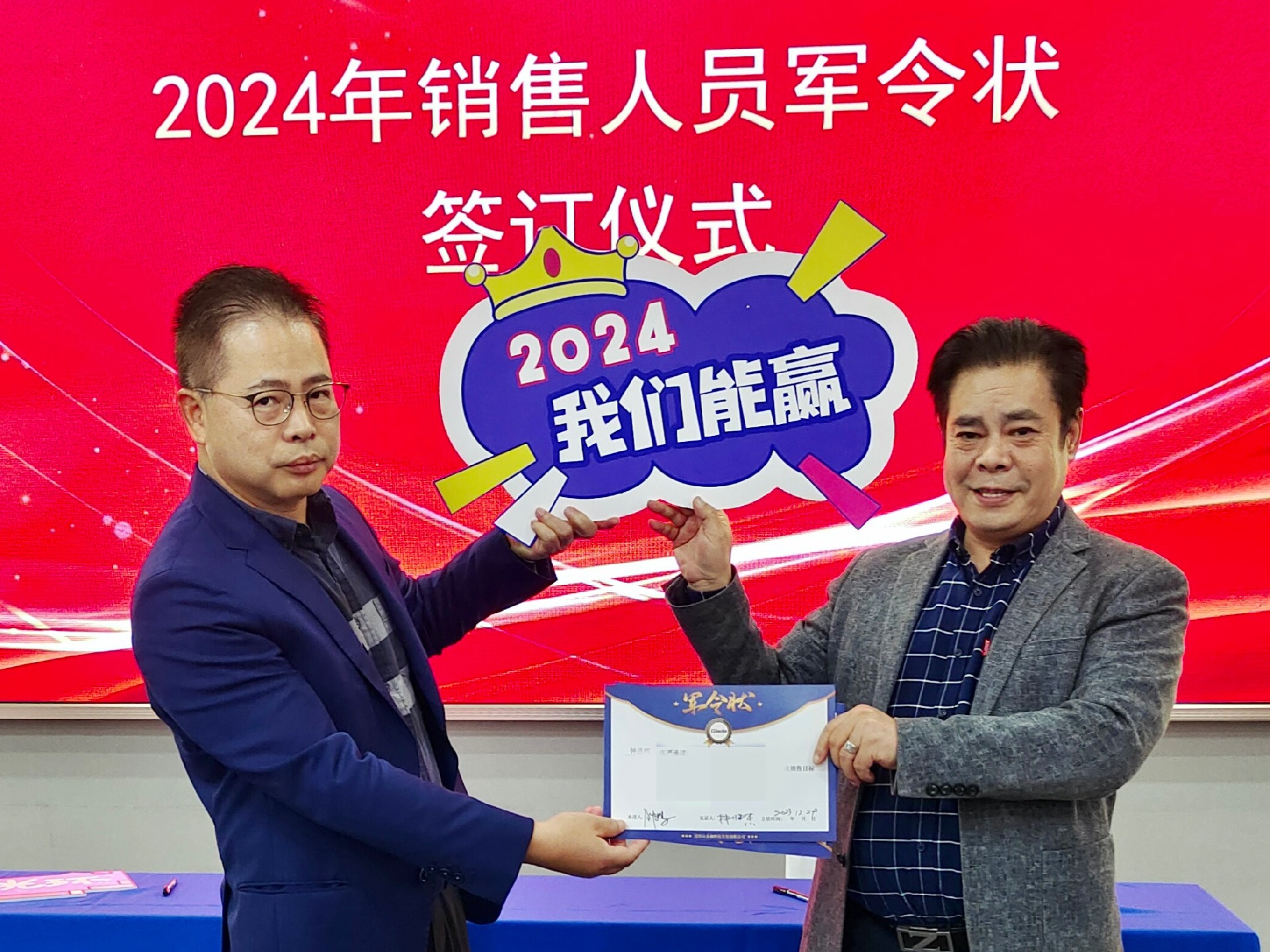 2024公司年度战略目标确立,言出必行,使命必达,国际/国内销售团队为了共同的目标开始军令状签约仪式。一纸军令状,是金年会|金年会·jinnian科技与销售人员的双向承诺,是压力,更是动力。是不破楼兰终不还的决心,更是春风得意马蹄疾,一日看尽长安花的期待。