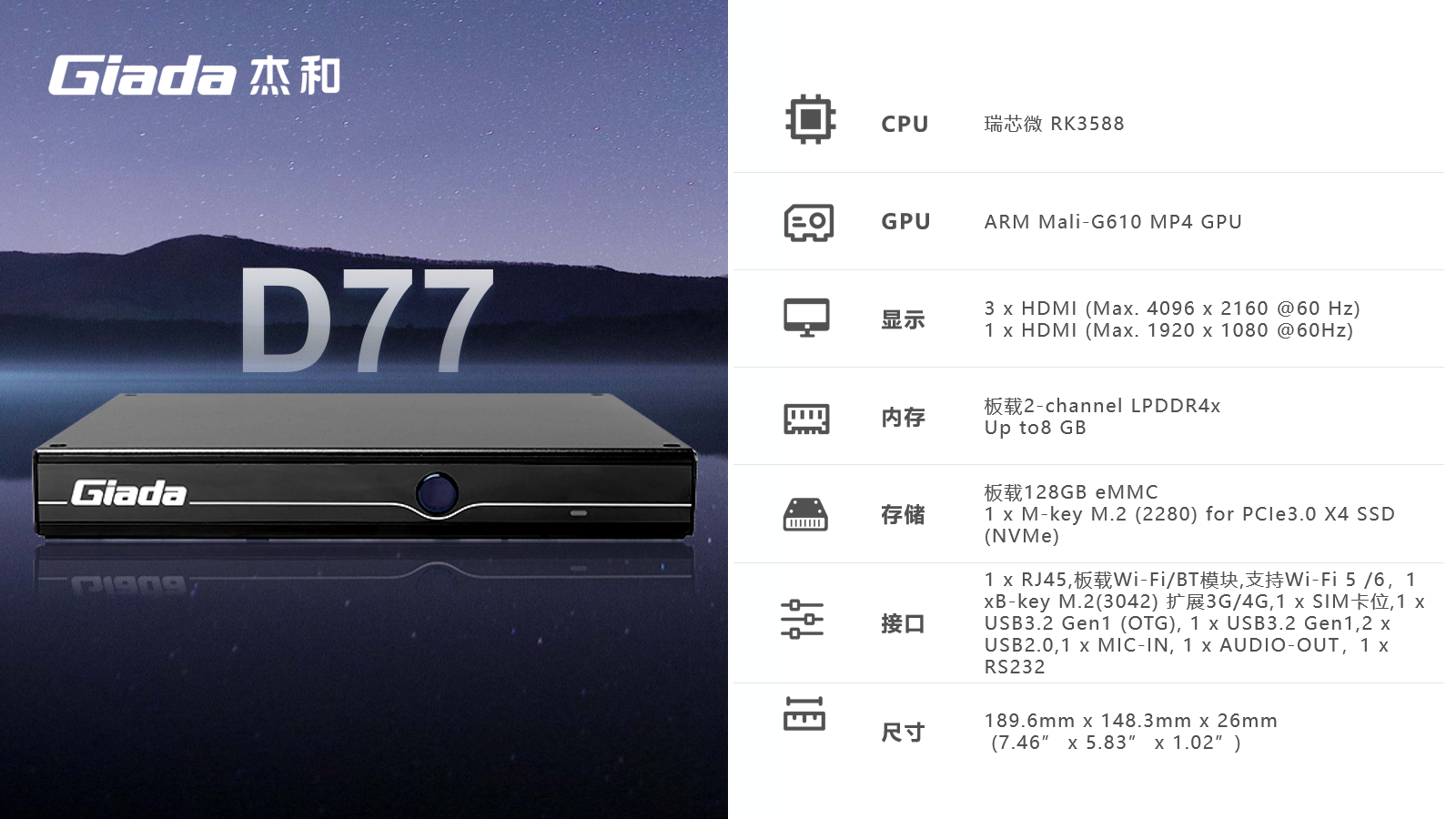 AIoT的落地场景包括智慧工业、智慧零售、智慧社区、智慧城市、智能显示、医疗健康等领域,在实际落地时,对物联网硬件设备的AI算力、数据运算、存储能力,稳定性及可扩展性能等提出更高要求,Giada金年会|金年会·jinnian科技作为行业领先的物联网数智化技术服务商,深入布局AIoT领域,推出AI产品系列,包括3.5寸主板、嵌入式整机、边缘计算盒子等,全方位覆盖了入门级到高性能级,满足不同应用场景的需求,为用户赋能。