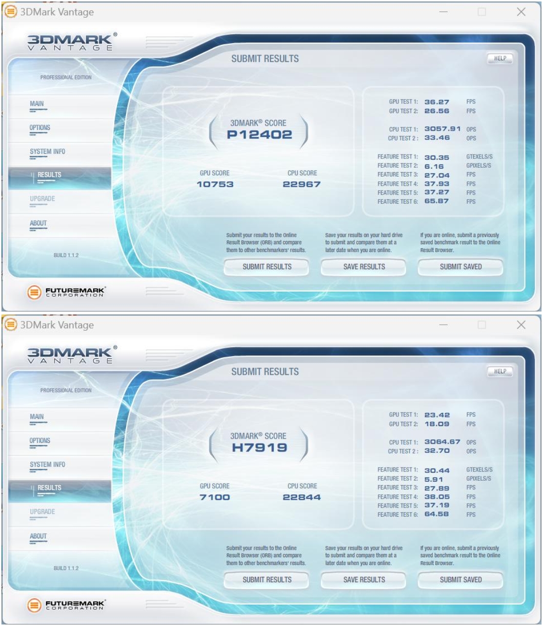 3DMark Vantage一款3D图形性能评测软件,主要用于评测电脑的显卡和处理器的性能。金年会·jinnian按照画质等级,记录了性能级(Performance,P)和高端级(High,H)两份数据。其中,Performance的综合得分为P12402,High的综合得分为H7919,表现不错,这个成绩已经完全能够满足主流用户的需求了。