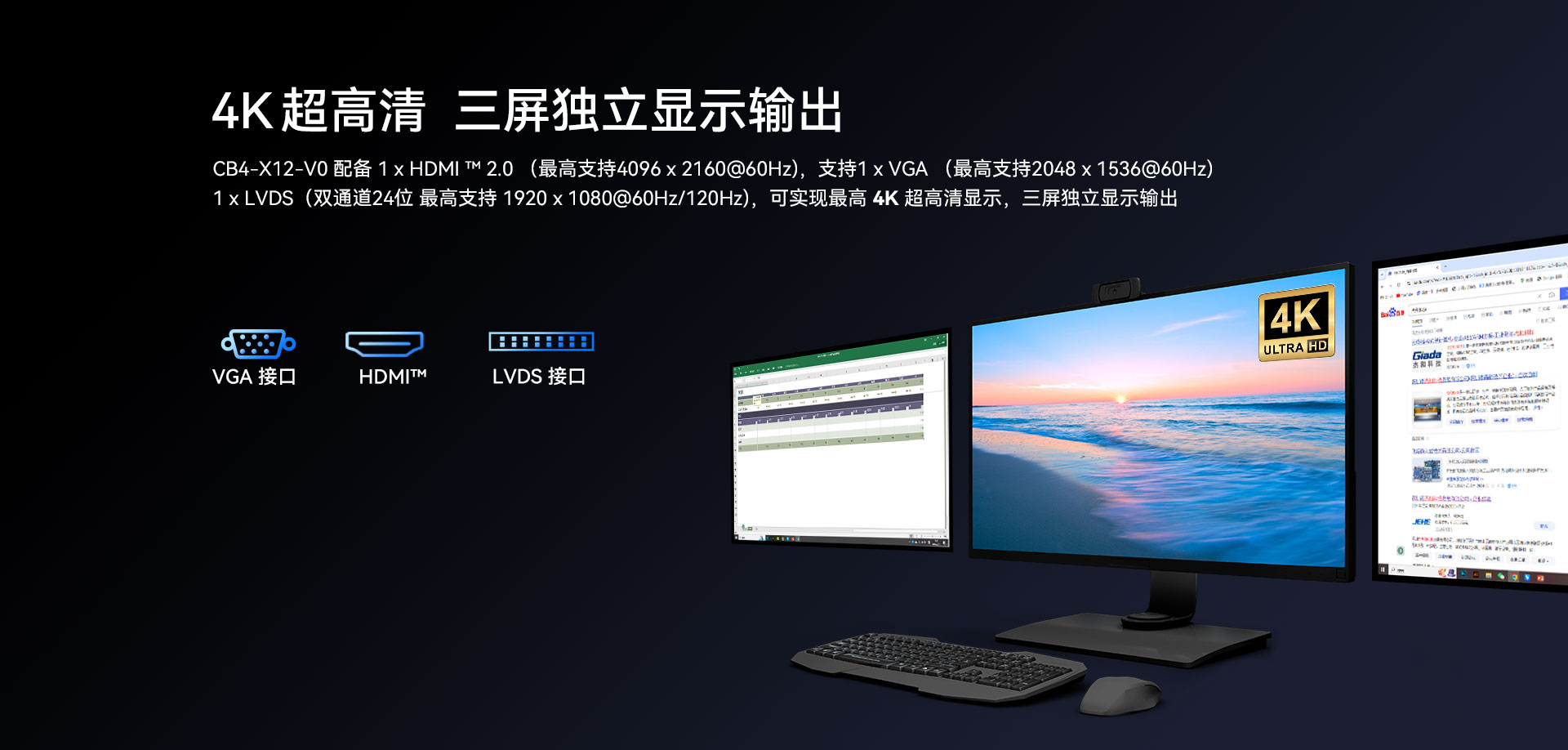 外部I/O | 接口 | 4 x USB 3.2 Gen2(10G) 1x VGA (Max.2048 x 1536@60Hz) 1x HDMI™ 2.0 (Max.4096x2160@60Hz) 1x LVDS( 双通道 24Bit Max.1920*1080@60Hz/100Hz/120Hz) 1 x MIC-IN, 1 x AUDIO-OUT 1 x RJ45 1 x RS232(COM / VGA 二选一) |